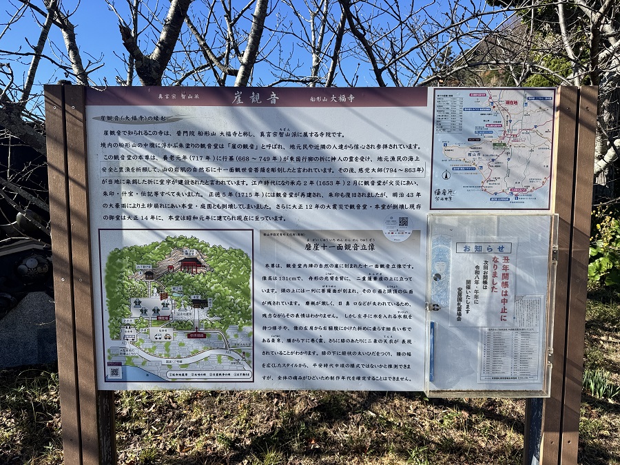 千葉県館山市にある崖観音(大福寺)は、船形山の中腹に建てられた寺院で、正式名称は「船形山 大福寺」。