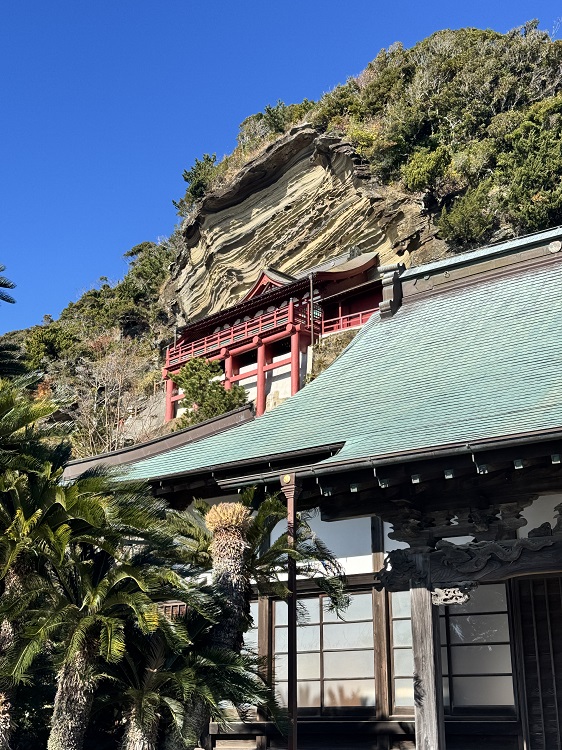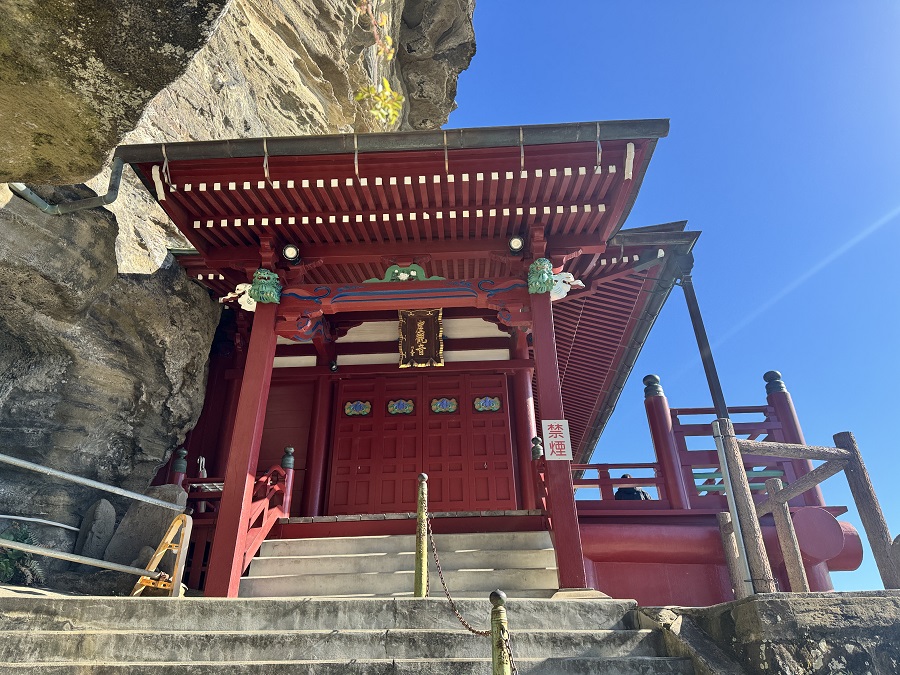 崖に建つ観音堂という非日常的な風景と、館山湾の絶景が同時に楽しめるのは、崖観音ならではの魅力です。