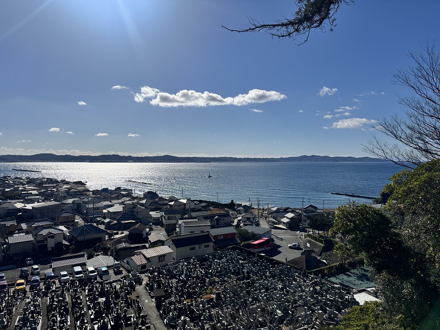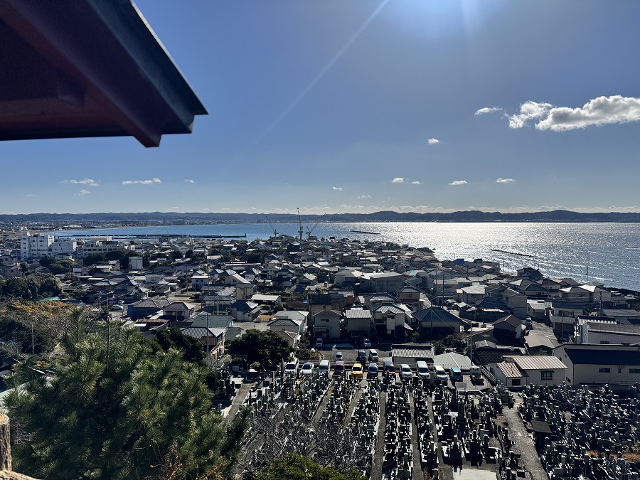 本堂の目の前からは、館山湾を一望できます。
