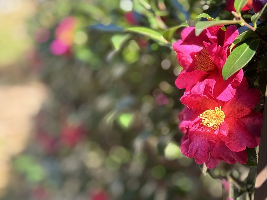 途中には、おそらく椿だと思われる花が、とてもきれいに咲いていました。