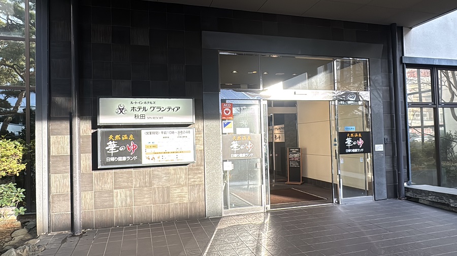 秋田駅からは少し距離があるかもしれませんが、歩いていけないわけではありませんでした。 「ルートイングランディア秋田SPA RESORT」は、通常のビジネスホテルに豪華な日帰り入浴施設が併設されたタイプ。宿泊客は、この温泉施設が何度でも「利用し放題」なのが最大の魅力です。