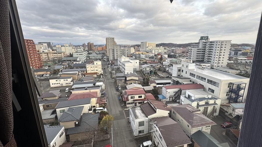 時計はすでに16時。秋田の冷たい風に吹かれながら、駅から歩いて今日の宿『ルートイングランディア秋田SPA RESORT』へ向かいました。