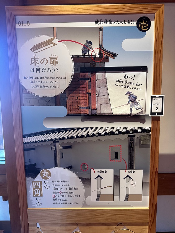 坤櫓(ひつじさるやぐら)には、ボランティアの方でしょうか、とても「営業上手」なスタッフがいらっしゃいました。見学に来た人たち全員に、「まずはぜひ映像展示を見ていってください」と元気よく声をかけておられたのが印象的です。