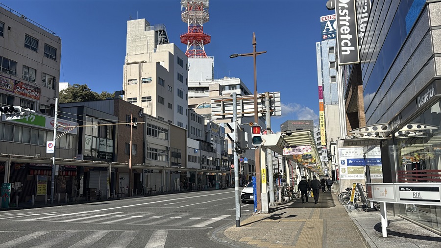 登呂遺跡近くの旅館『旅館登呂』から静岡駅方面へ