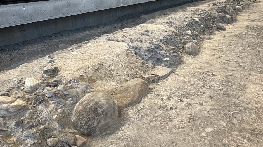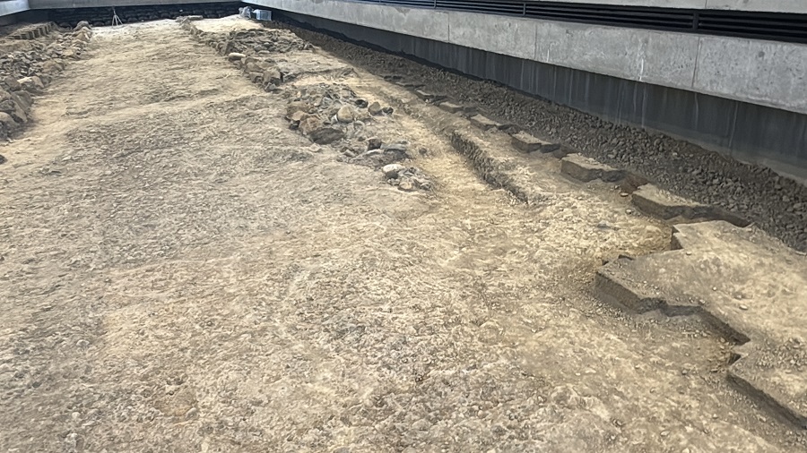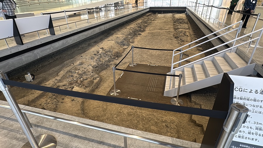 先ほどお伝えした通り、展示エリアの多くは写真撮影が禁止されています。ただし、1階にある『戦国時代末期の道と石垣の遺構』だけは、写真撮影が可能です。