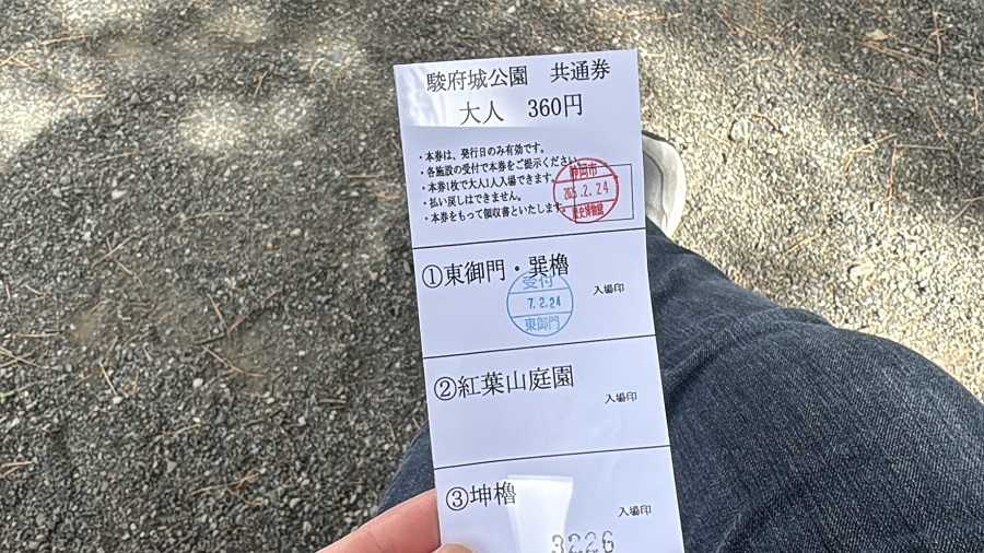 ちなみに、博物館の受付では駿府城公園の「共通券(各櫓・庭園)」も一緒に購入できます。私はあらかじめ博物館でまとめて支払いを済ませましたが、もちろん各施設の入り口でその都度支払うことも可能です。