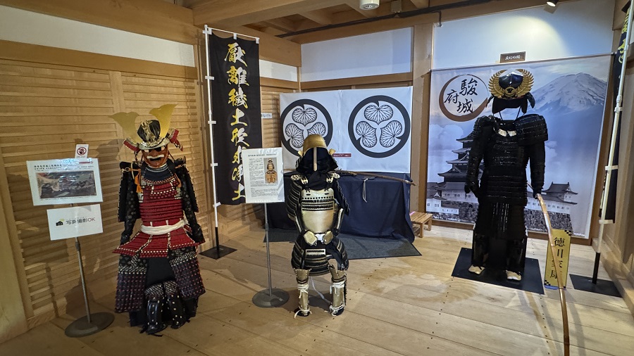 ここでは、駿府城の歴史を学べる2種類の映像展示(各約5分)や、重厚な甲冑の展示、さらには櫓がどのように復元されたのかを詳しく知ることができます。先ほど見た巽櫓(たつみやぐら)とはまた一味違ったテイストで、より深く歴史に浸ることができました。