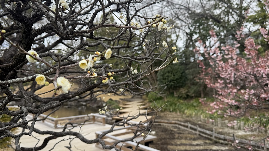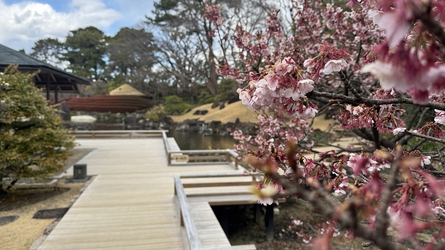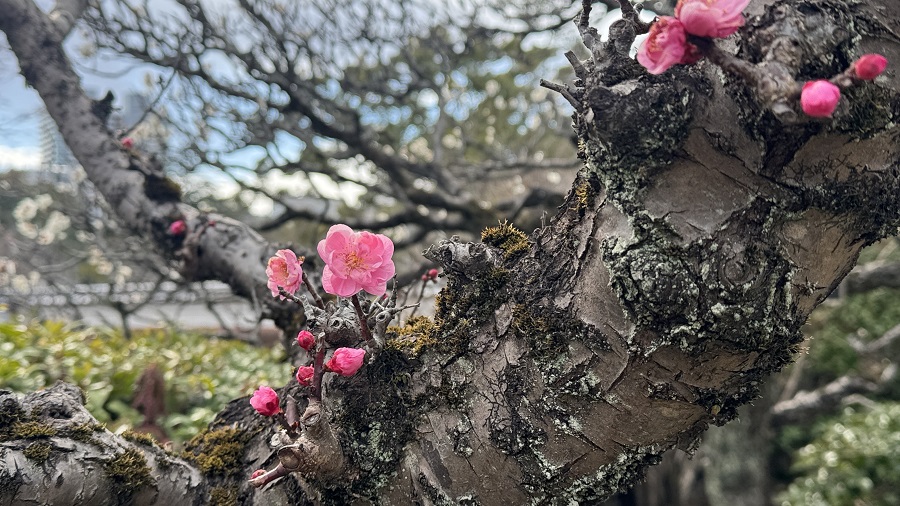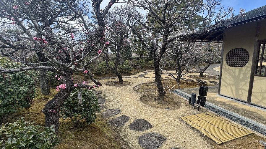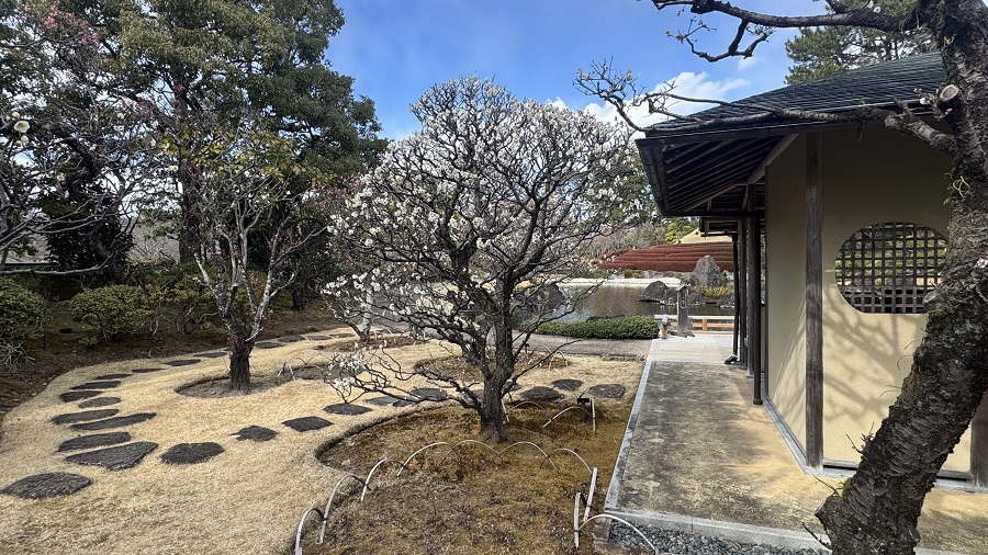 もともと日本庭園が大好きなのですが、折しも季節は春。咲き始めた梅の花から、えも言われぬ良い香りが漂ってきて、五感で癒やされるひとときを過ごせました。