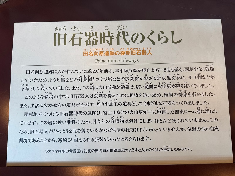 関東地方の旧石器遺跡は、主に富士山などの火山灰が堆積した「関東ローム層」に覆われています。この層は強い酸性のため、骨などの有機物は分解されてほとんど残りません。 そのため、当時の服装など詳しいライフスタイルは未解明な部分も多いですが、この厳しい寒さに耐えうる装いだったことは間違いありません。