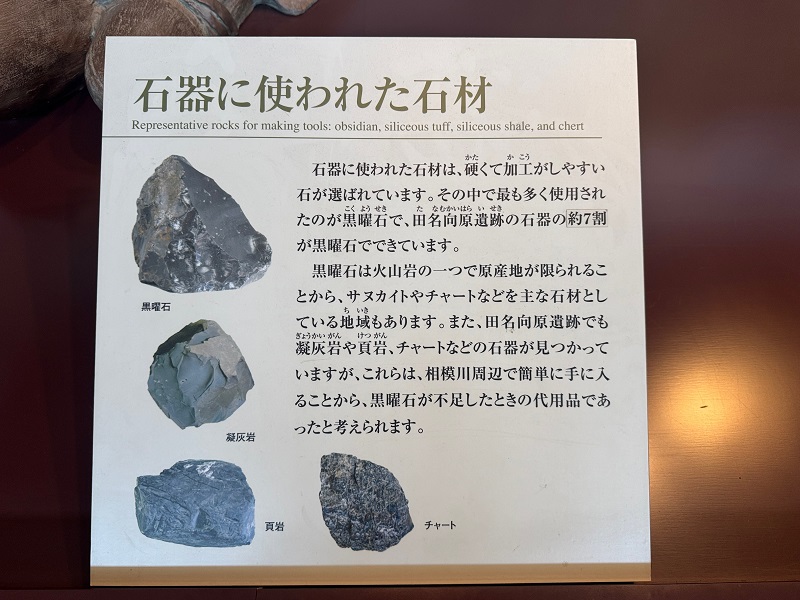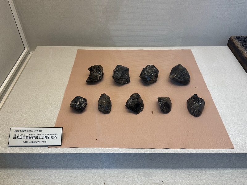 さらに、近隣の田名塩田遺跡群(A地区No.2地点)からは、長野県・星ヶ塔(ほしがとう)産の原石が9個もまとまって見つかったそうです。はるか遠く長野から運ばれてきたのかと思うと、ロマンを感じずにはいられません。