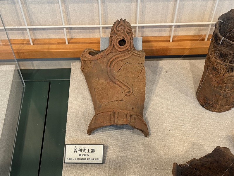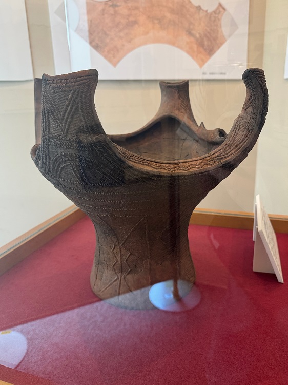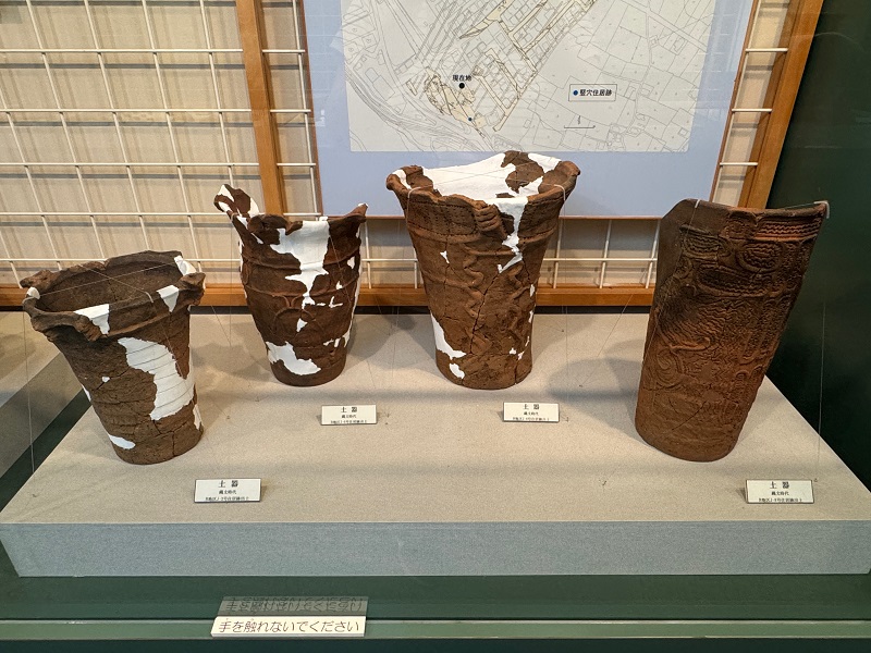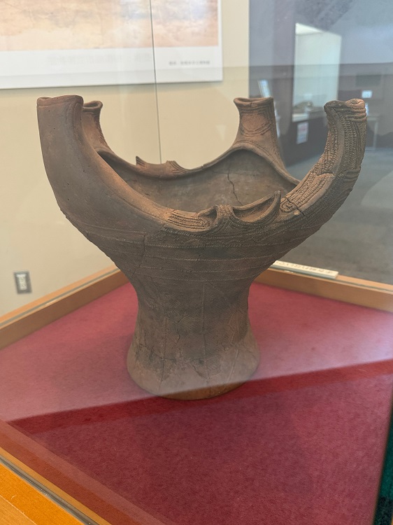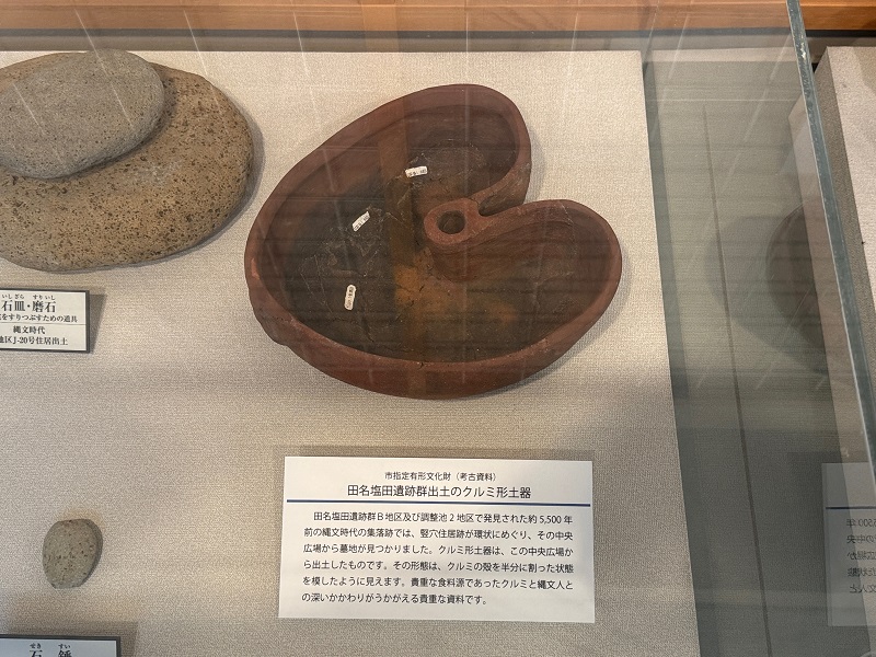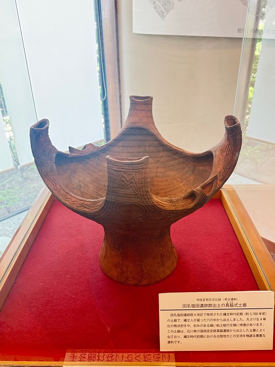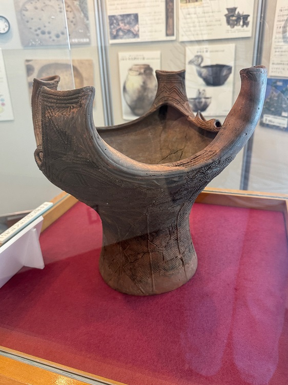 真脇式土器の美しさもさることながら、会場には他にも「曽利(そり)式土器」や、非常に珍しい「クルミ形土器」などが展示されています。