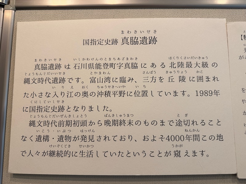 真脇遺跡(まわきいせき)は、石川県能登町真脇に位置する、北陸最大級の縄文時代の遺跡です(国指定史跡)。