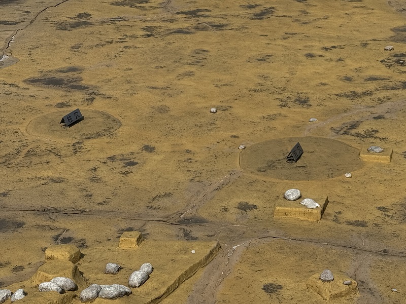 遺跡に「復元」と記されているのには理由があります。実は、貴重な遺構を保護するために一度埋め戻しが行われており、その真上に当時の姿を再現した「レプリカ」が設置されているのです。