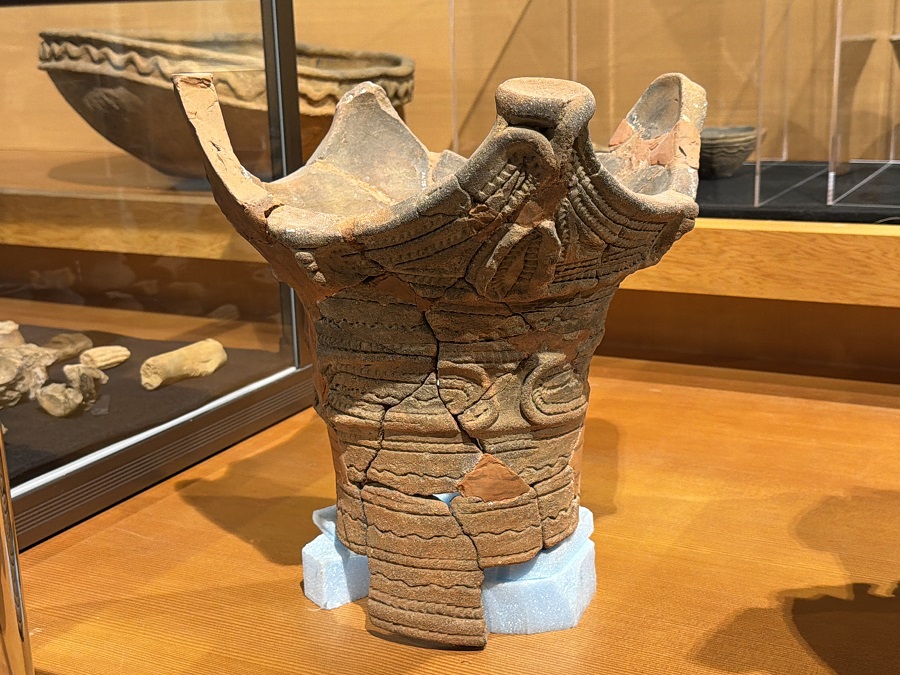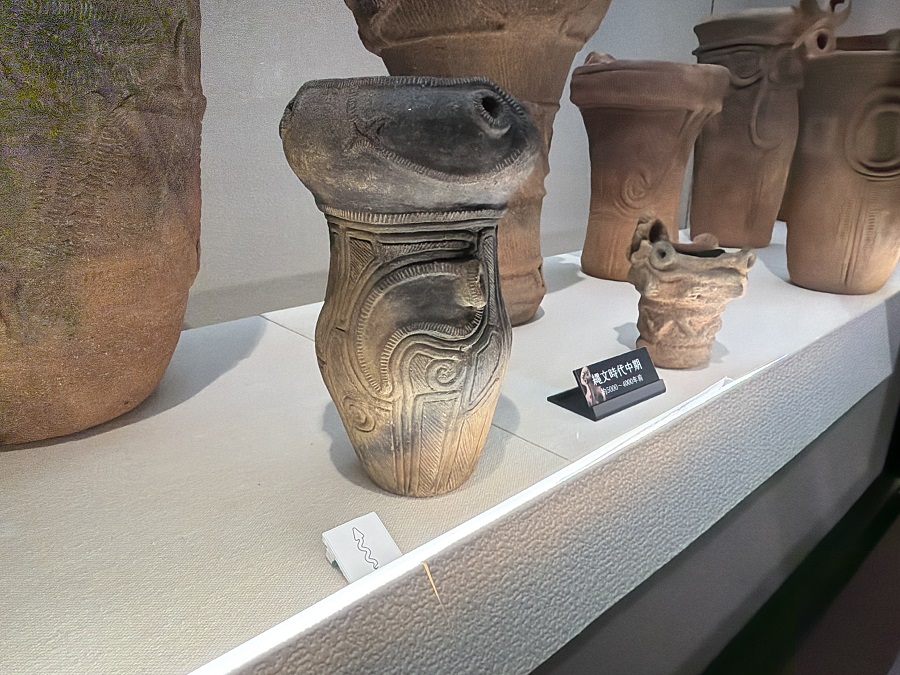 縄文時代中期の土器の造形美を入館料無料で見学することができます(ラヴィちゃんとピースもよろしくね)
