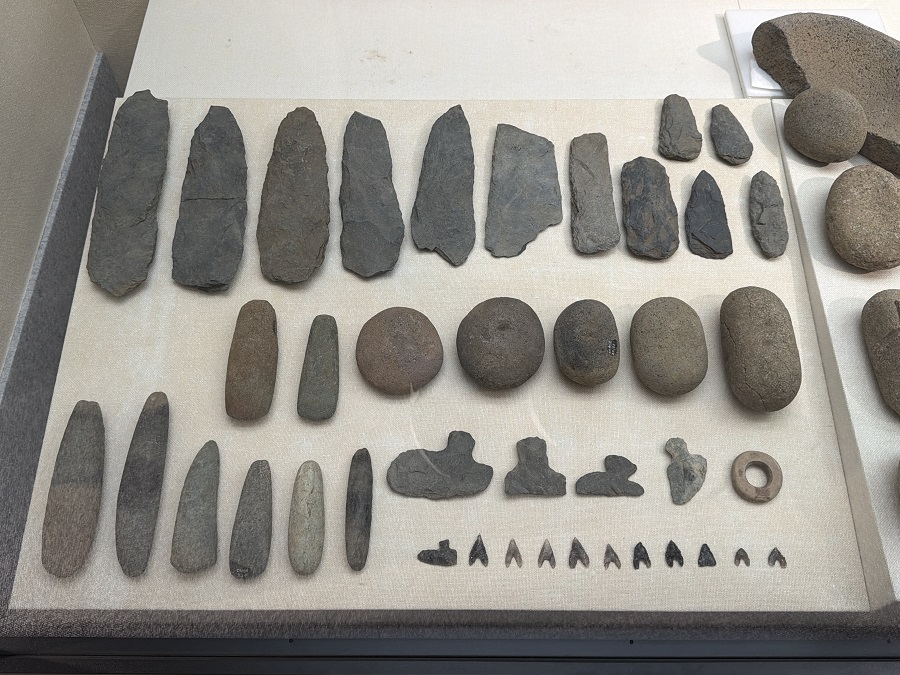 土器や土偶以外に、もちろん石器類も多く展示されています。