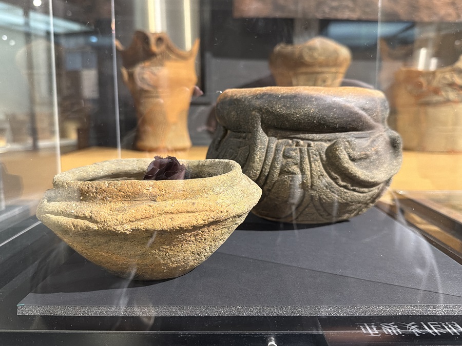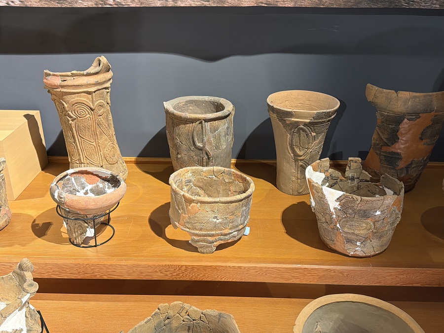 ふるさと文化伝承館の1階に展示されている土器たち