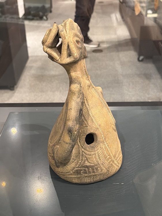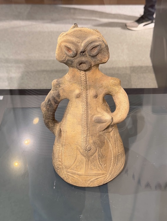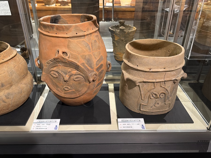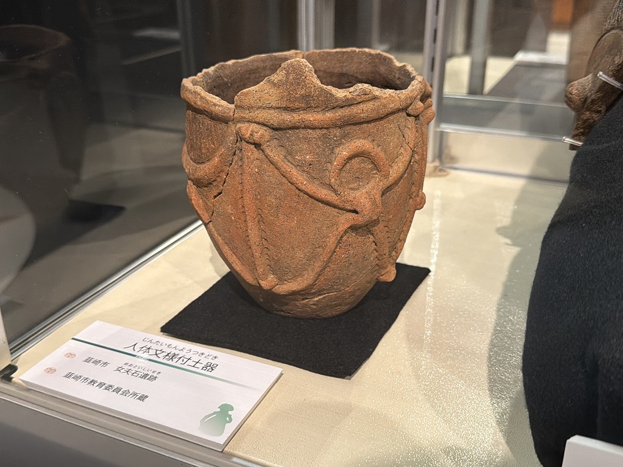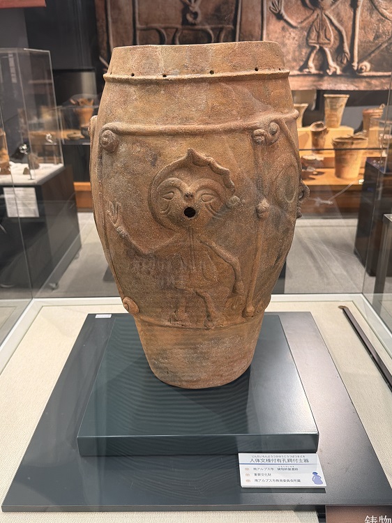 教科書で1度は見たことがあるかもしれない土器、鋳物師屋遺跡から出土した『人体文様付有孔鍔付土器』です。