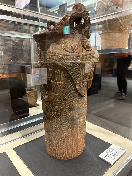 この神像筒形土器はレプリカなので写真撮り放題でした(本来は写真撮影不可)。