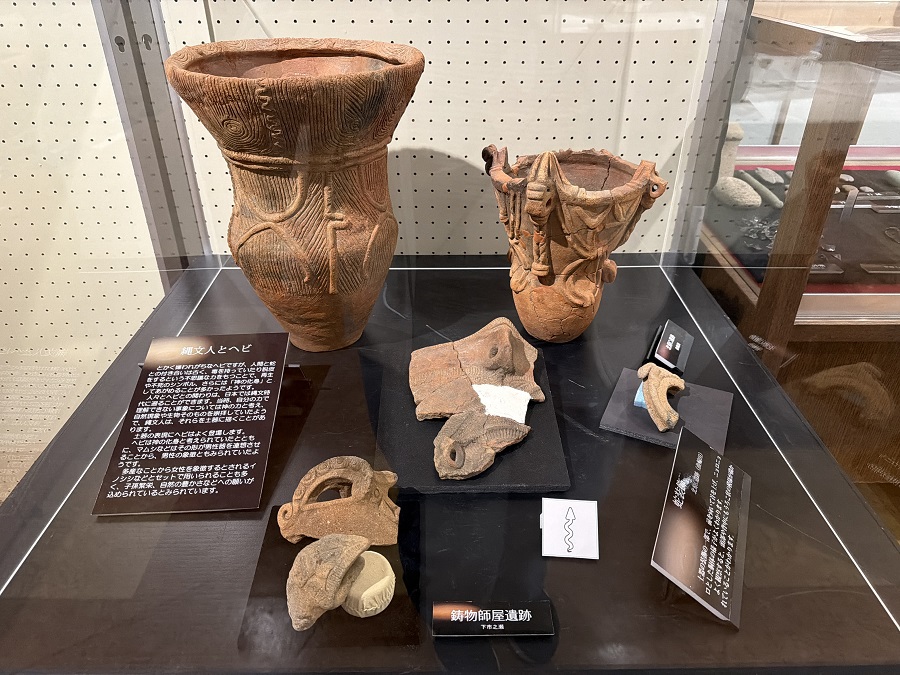 鋳物師屋遺跡の出土品を中心に土器、土偶、石器などを展示している「ふるさと文化伝承館」