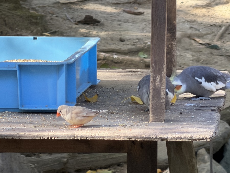 鳥が逃げないよう二重になったドアを通り、靴を消毒していざ中へ。すると……「おお〜!」と思わず声が出るほど、見たこともない鳥たちがたくさん! 元気に走り回ったり、夢中でエサを食べたり、のんびり日向ぼっこをしていたりと、愛くるしい姿をたっぷり堪能できました。