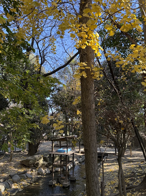 イチョウの葉で「ようこそ」と書かれていてすごい