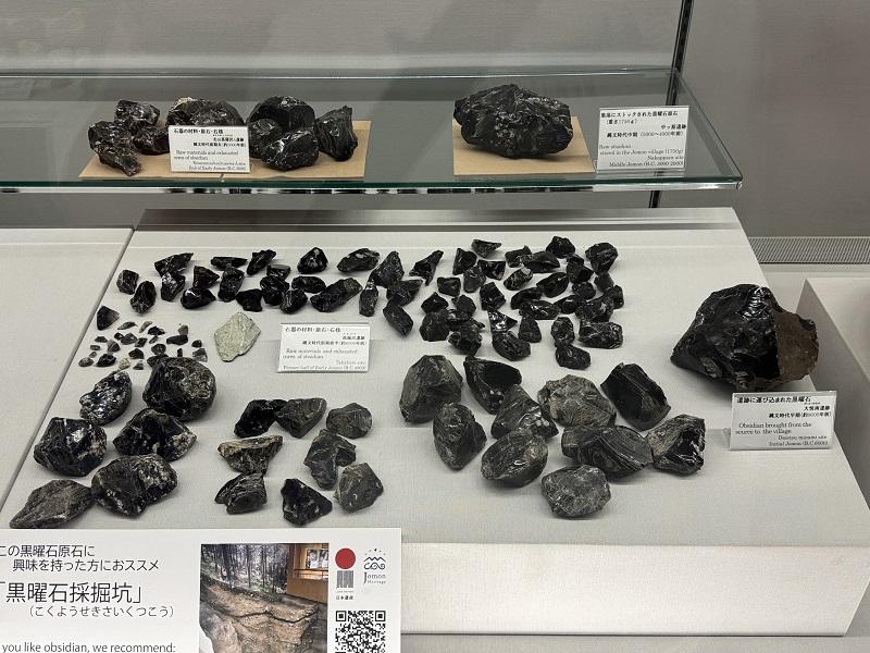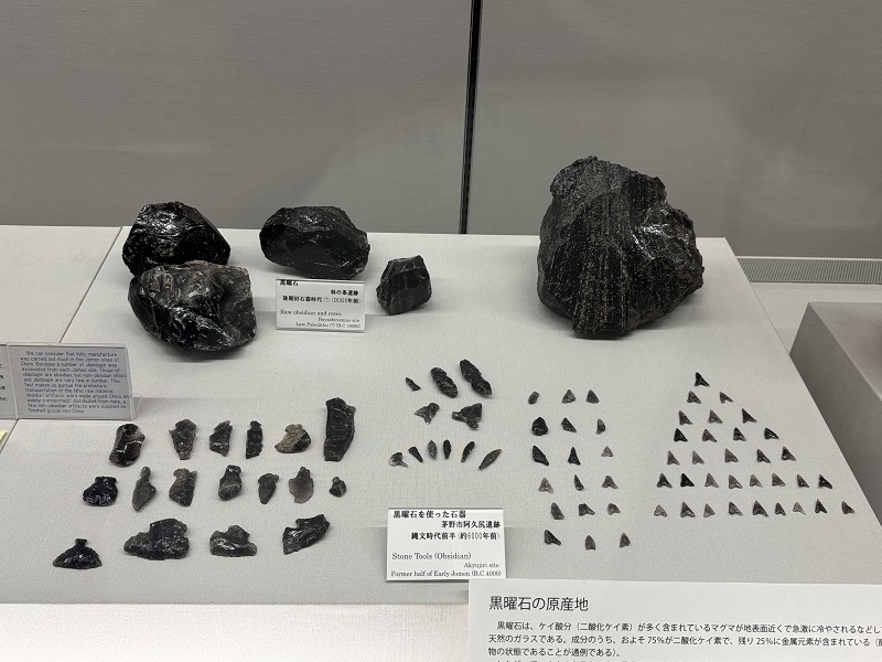 国宝土偶のほかにも、キラキラ輝く天然のガラス「黒曜石」、霧ヶ峰から八ヶ岳一帯にかけて黒曜石が採れたことで、この場所は縄文時代の中心地として栄えていました。