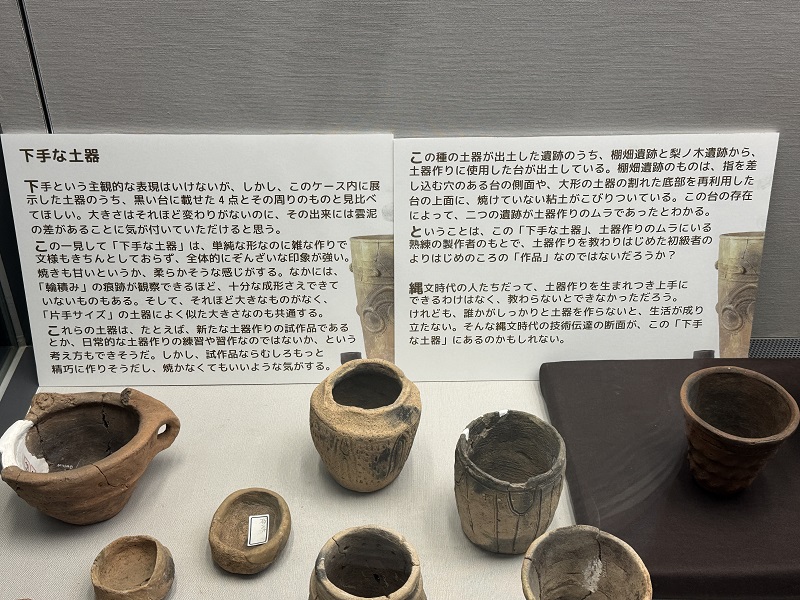 いままで均等の取れた土器、装飾がダイナミックで複雑な土器など見てきましたが、最初からそんな土器が作れるわけではないのです。