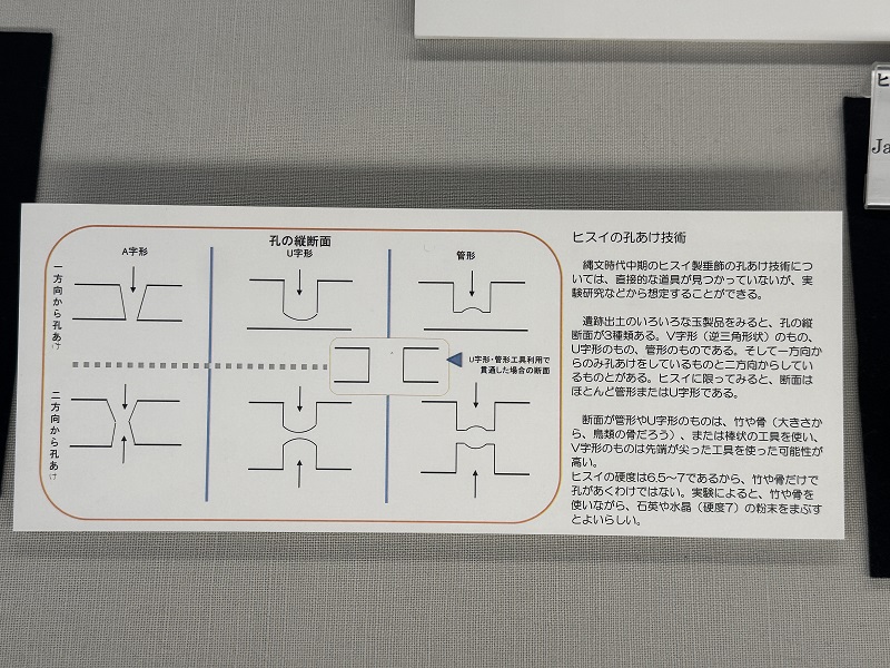 非常に硬度が高いことで知られるヒスイを、当時の人々がどのように加工していたのか。その緻密な工程の解説もあり、非常に興味深かったです。