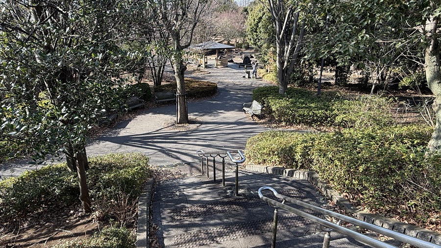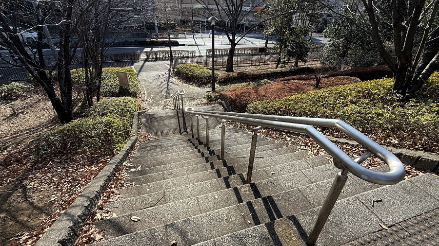 ところが、その公園の階段が思いのほか急で、「多摩境駅周辺はこんなに高い位置にあるんだな」と、地形については素人の私ですが、とても驚きました。