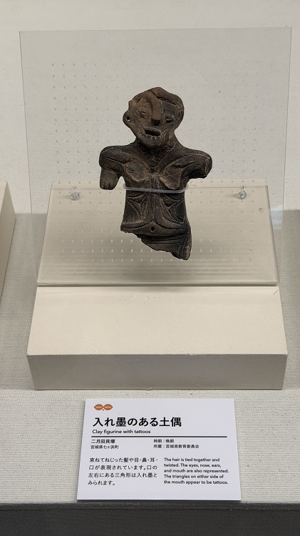 土偶には入れ墨の表現と考えられるものがあります。古くから、入れ墨は身元の識別や刑罰、または呪術的な目的で用いられてきたと言われています。また、抜歯とともに、痛みに耐えて成人となった証として入れた可能性も考えられています。